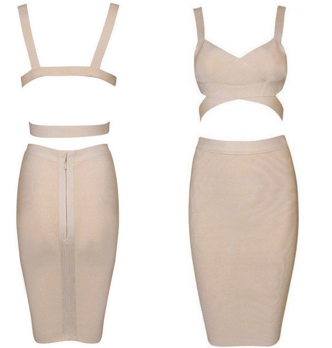A gorgeous 2-piece that's totally on trend. Pair the high-waisted bandage skirt with the cute cropped top for a sleek look. The wide straps and criss cross waist detail highlights a tiny waist a sexy feminine curves.