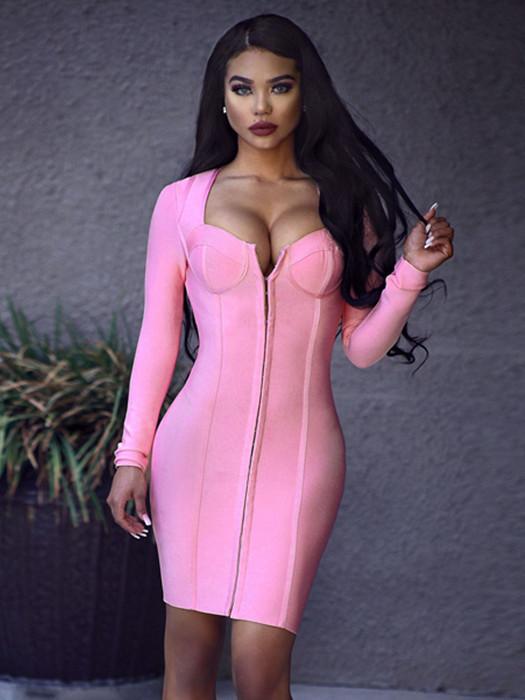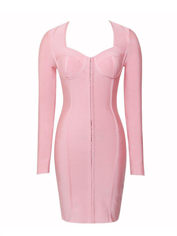 We simply adore the chic vibes and gorgeous pink tones of 'Cupcake' this Perfectly dress is everything you’ll want for your chick nights! The sharp sweetheart neckline and cut of the shoulders give the bodice a trending ‘Barbie doll’ look! The straight-down metal clasps help show off and trim the figure! The dress is snug and luxurious thanks to our flawless bandage dress fabric.