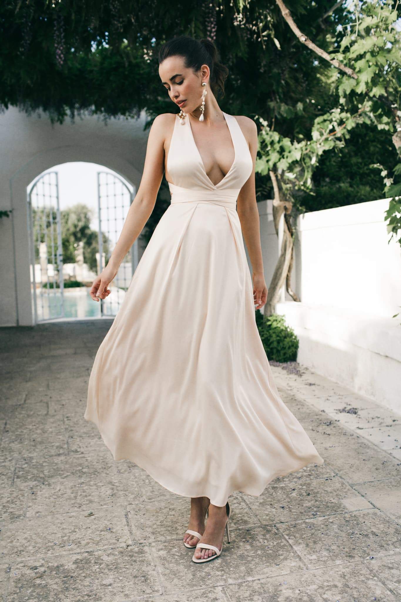 Get lost in a day dream with this incredible satin dress. The convertible straps give you freedom to change your look to anything you want. Tie it up as a halter, criss cross the back or wrap straps around for a roman goddess look.
